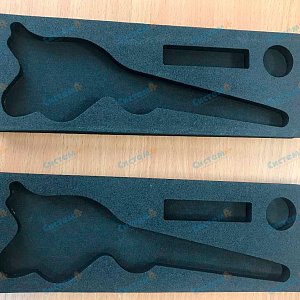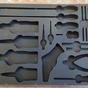 Сложные по форме ложементы, в которых создаются ячейки для каждого инструмента из набора, производятся методом лазерной резки или фрезерования. Если произвести необходимо более простой по форме вкладыш, то применяется плоттерная резка, она дешевле и быстрее лазера. Предыдущие методы можно использовать при любых партиях, однако метод вырубки наиболее выгоден при производстве крупных партий одинаковых по дизайну товаров. Подробнее об этом расскажут наши менеджеры на первичной консультации.