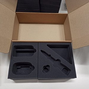 В техническом задании был указан материал – эластичный пенополиуретан марки 2240. Мы использовали именно этот вспененный полимер для производства ложементов, а затем дополнили их картонной коробкой.