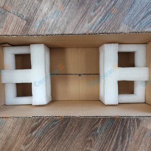 Для своего нового оборудования компания запросила изготовление аналогичных вставок из несшитого пенополиэтилена. Этот материал имеет небольшой вес и стоимость, он прост в обработке и отлично подходит для производства одноразовых транспортных вставок. Заказчик прислал нам параметры сервера, нашей задачей было разработать чертежи ложементов, а также подобрать картонный короб для упаковки и доставки каждого экземпляра товара.