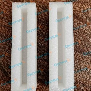 В техническом задании клиента был указан полимерный материал – несшитый пенополиэтилен, который и стал основой вставок. Этот вспененный полимер отлично подходит для одноразовой транспортной упаковки за счет низкой цены, устойчивости к разрывам, пористой структуры и хорошей амортизации.