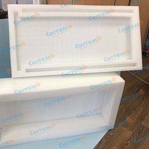 На фото тестовый образец ложемента, изготовленный из несшитого пенополиэтилена. Скоро планируется запуск партии упаковки, но из другого полимера – сшитого пенополиэтилена.