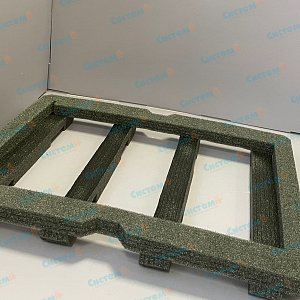 Для разработки чертежа заказчики предоставили нам информацию о габаритах серверов, показали фото материала, который хотели бы использовать. Несшитый вспененный полиэтилен — один из лучших материалов производства упаковки для серверов и другой чувствительной техники.