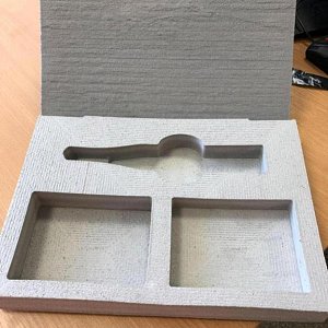 После согласования чертежей и материала упаковки мы ее изготовили методом фрезеровки и отправили клиенту пробный образец на тестирование. Заказчик прислал свои комментарии, и мы немного подкорректировали размер ложементов, чтобы они идеально расположились в кейсе. Клиент получил исправленный образец, согласовал его, и далее мы приступили к производству и доставке полноценной партии изделий.