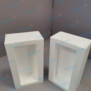 Для продукции нашего постоянного клиента мы создали именно такое упаковочное изделие из пенопласта. Легкое, красивое, аккуратное и очень ударопрочное. Пенополистирол — это прочный полимерный материал, на 98% состоящий из воздуха. Использование пенопластовых накладок защитит непрочные углы деревянной коробки от сколов, трещин и других повреждений.