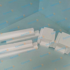 У заказчика не было чертежей упаковки, но были чертежи оборудования, которое требовалось упаковать. С учетом этой информации специалисты нашей компании разработали чертежи упаковочных элементов. По ним обработали пенопласт посредством контурной резки. Это бюджетная, высокопроизводительная и простая технология обработки вспененных материалов.