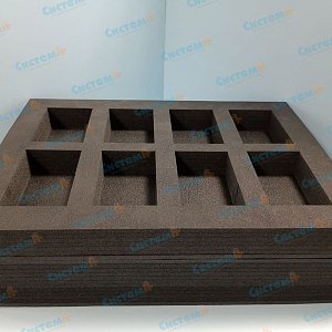 Сшитый пенополиэтилен — это прочный, упругий материал с высокой амортизацией. Его часто применяют при производстве многоразовых ложементов для хрупкого чувствительного оборудования. Он выдерживает длительные нагрузки, отлично поглощает удары, не имеет запаха, не образует пыли. Из него можно изготовить сложные многоярусные вкладыши необычных конфигураций.