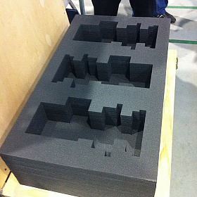 Уголки и вставки для сложного оборудования фиксируют тяжелые станки и приборы внутри транспортных коробок.